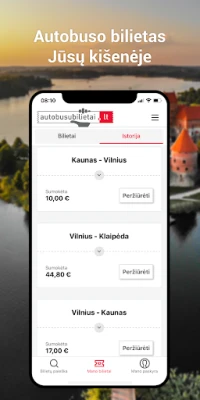 Get the Autobusubilietai.lt application and choose a trip from over 40 carriers offering bus travel in Lithuania and Europe. Create your own account and buy tickets with a few taps on the screen. Purchasing bus tickets has never been easier and faster!