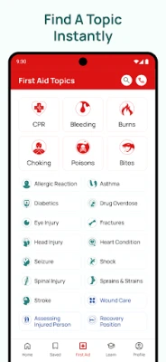 iFirstAid will help you remain calm and in control, guiding you through situations including: