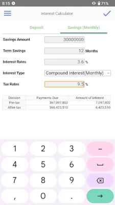 The calculation of the interest (savings, deposits). Please use a financial calculator ~ You can choose to calculate and isolation, compounded monthly. Calculate the monthly savings deposit maturity amount expected to achieve the target amount or amounts. The detailed calculation of maturity when the lump sum payment period of deposit. Calculate the maturity payment when saving a certain amount each month for the target period. You can use the deposit, a savings interest calculator. Try and use a calculator ~