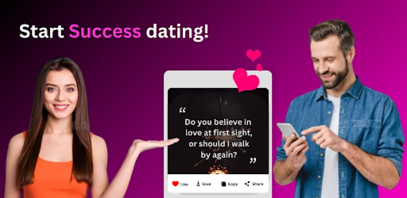 Introducing Pickup Lines, the ultimate app for crafting charming banter and sparking romance! With a vast collection of flirty messages, cheesy pickups, and sweet compliments, this app is your go-to for igniting connections and spreading smiles. Whether you're flirting with a crush or spicing up your relationship, our carefully curated selection of romantic lines and cute conversations will make you the master of love language. Download Pickup Lines now and let the fun begin!